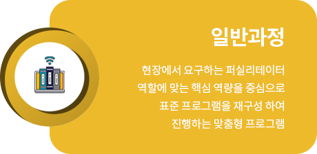 퍼실리테이션 현장에서 요구하는 퍼실리테이터 특성에 맞춰 표준 프로그램을 맞춤형으로 재구성하여 진행되는 과정으로 현장 맞춤 퍼실리테이터와 러닝 퍼실리테이터 과정이 있습니다